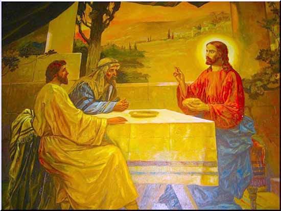 До самого вечера, пока не настало время ужина, продолжался этот разговор. Во время трапезы Иисус Христос открыл Себя апостолам и они, наконец-то узнали своего спутника, а через мгновение, Господь будто растворился в воздухе и стал невидимым.