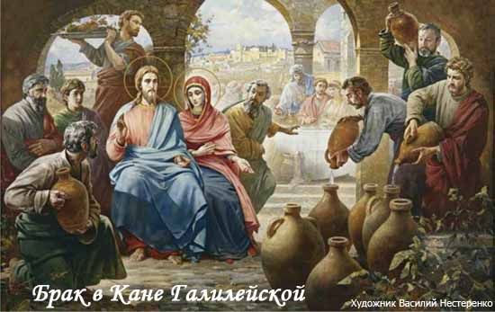 Богословы считают, что своим присутствием на брачном пиру и совершением во время него своего первого чуда Иисус Христос установил и освятил таинство брака.