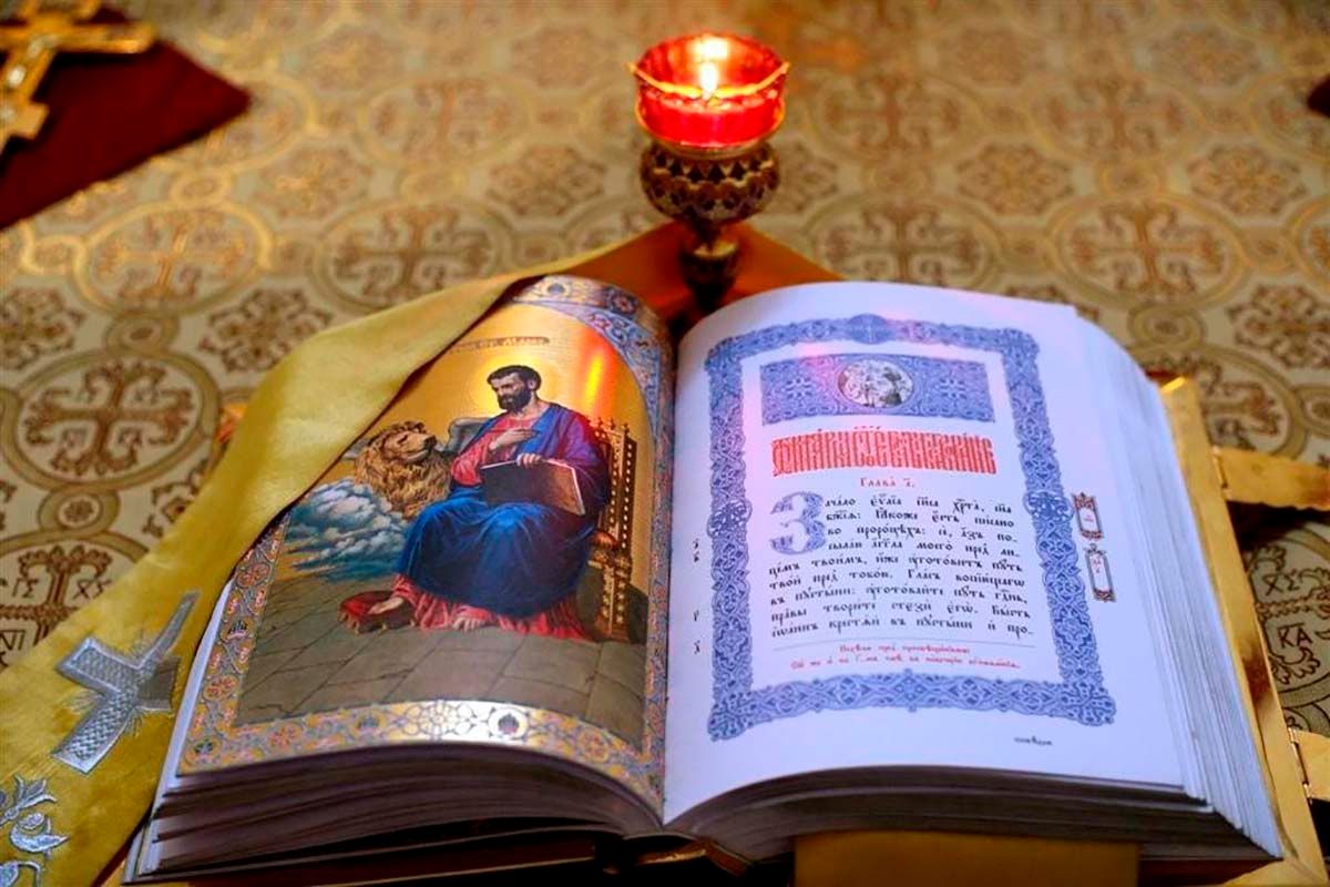 Вынос Евангелия и его чтение – один из самых торжественных моментов православного богослужения, согласно заповеди Иисуса Христа «проповедуйте Евангелие всей твари» (Мк.16:15), оно читается во время утрени, всенощного бдения, Божественной Литургии, молебнов на некоторых церковных Таинствах и требах. Для этой цели используется специальное богослужебное (напрестольное или требное) Евангелие. Богослужебное Евангелие разделено на фрагменты (зачала). В Евангелии по Матфею церковных зачал 116, по Марку – 71, по Луке – 114, по Иоанну – 67.