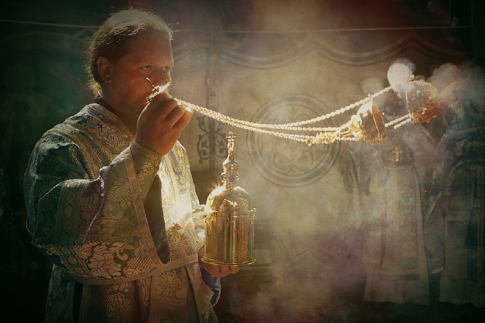 Заходя в церковь, ощущается особенный, ни на что не похожий аромат - аромат ладана. Ладаном называется ароматическая смола, которую, при помощи угольков, священнослужители жгут в кадилах во время богослужений. Держа в руке кадило (специальный металлический сосуд с крышкой и на цепочках), батюшка обходит всё храмовое пространство, «окуривая» его.