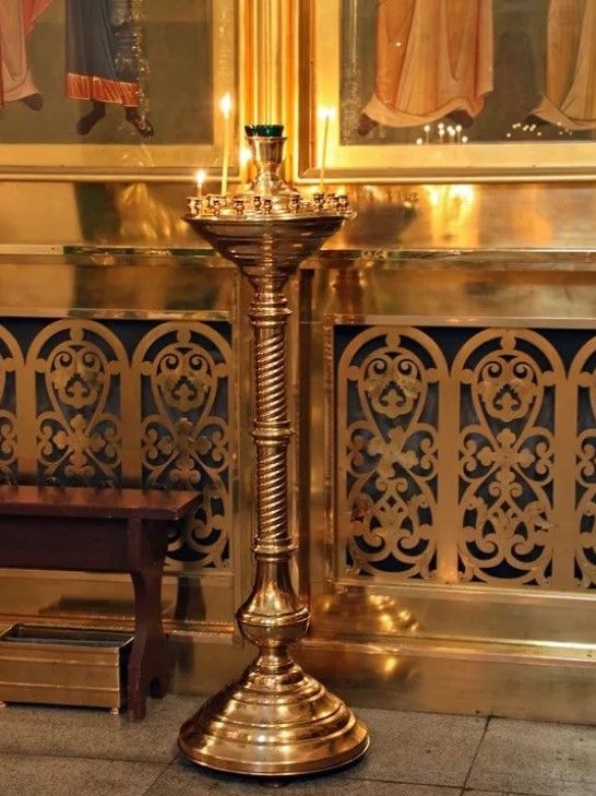 2) большой подсвечник, стоящий перед иконой в храме