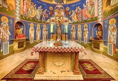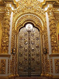 Алтарь отделяется от храма особой перегородкой, которая уставлена иконами и называется иконостасом. В ней три двери.