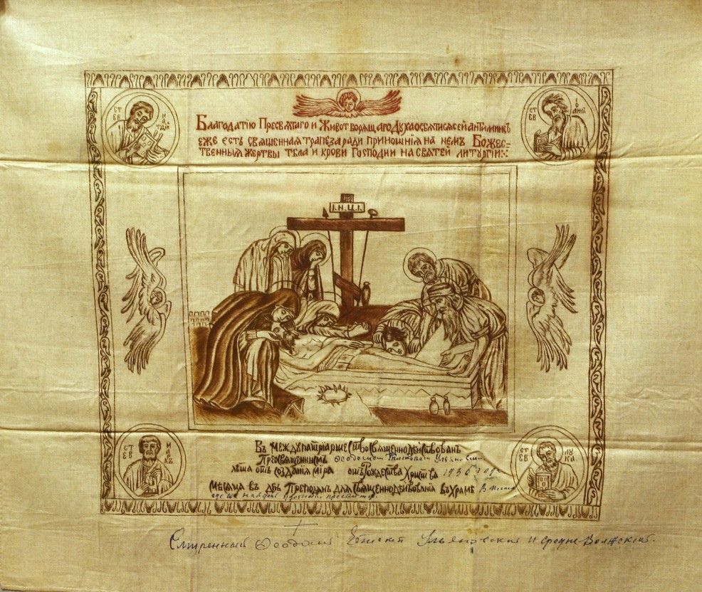 На фотографии – уникальный самодельный антиминс, выданный в страшные богоборческие годы: 1930-е. На нем мы видим надпись епископа, благословляющую совершать Литургию: «В месте, где же найдет уместным пресвитер». И год: 1936. Это означает, что на этом антиминсе можно совершить Литургию в лесу, на частной квартире, в ином потайном месте. Большевики думали, что священников они выловят, храмы закроют и Церковь прекратит свое существование. Однако Церковь ушла в подполье, стала тайной… Несмотря ни на какие гонения, нельзя людей лишать Божественной службы, и она будет совершаться наперекор всему, в любых