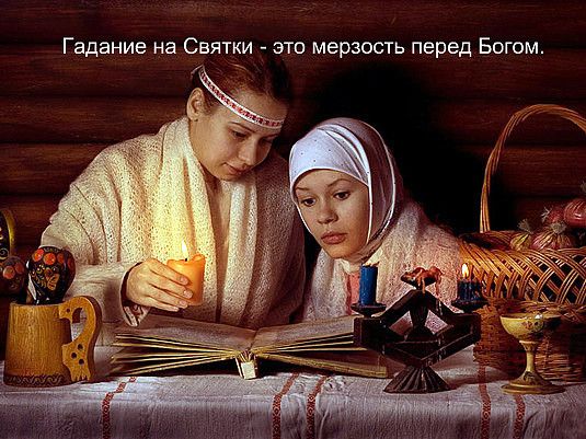 Особенно сильно такие языческие тенденции становятся заметными накануне праздничного двухнедельного периода с Рождества до Крещения, который в народе называют Святками. Если подлинно верующие Православной Церкви стремятся это время проводить в молитвенной радости, посещая службы и совершая добрые дела, то люди нецерковные и суеверные используют эти дни для гуляний, сопровождающихся, как правило, пьянством и объедением. Нередко таким гуляниям (особенно в женских коллективах) сопутствуют всевозможные обычаи и забавы, среди которых встречается, например, и гадание на суженого, детей, судьбу. Но если одни относятся к гаданию как к невинному занятию и средству позабавиться, то другие, наоборот, движимые неудовлетворенностью своим положением в жизни, а также нездоровым любопытством и желанием узнать свое будущее, придают ему особое значение. Но оба эти отношения одинаково опасны для духовного здоровья человека, потому что подобные действия вольно или невольно делают его заложником определенных обстоятельств либо погружают в область магии и подталкивают ко встрече с демоническим миром.