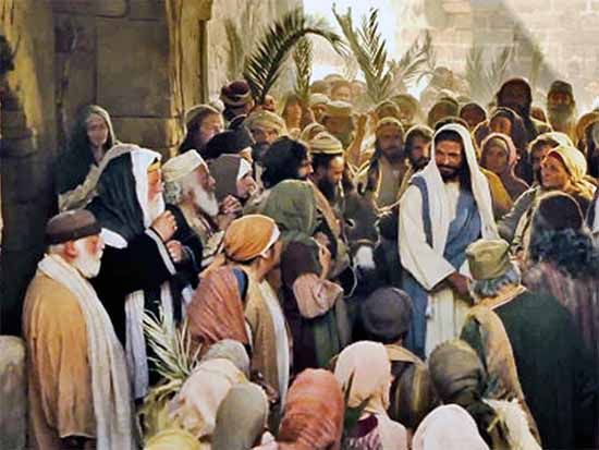 Ст. 17-19 Народ, бывший с Ним прежде, свидетельствовал, что Он вызвал из гроба Лазаря и воскресил его из мертвых. Потому и встретил Его народ, ибо слышал, что Он сотворил это чудо. Фарисеи же говорили между собой: видите ли, что не успеваете ничего? весь мир идет за Ним