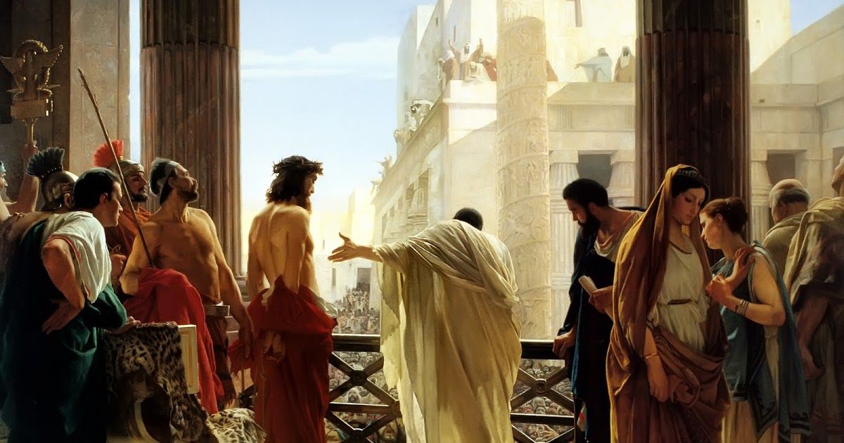 Думая, что он оскорбит Кесаря и подвергнет себя опасности, если не обратит внимание и оставит без разбора такое обвинение иудеев, Пилат вывел Иисуса Христа из претории и публично сел на судейском месте, чтобы все присутствовавшие были свидетелями разбирательства дела.