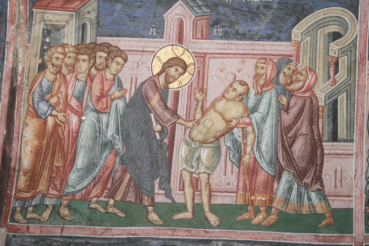 Христос, конечно, знал, чего ждали фарисеи, и открыто Сам пошел им навстречу. Он спросил их: «Позволительно ли врачевать в субботу?» Законники и фарисеи молчали. Им невозможно было здесь, пред всем собранием обнаружить свое бессердечие и, вероятно, стыдно было и пред самим больным, которого вероятно, они же сами привели сюда. Поэтому они молчали. Тогда Христос «прикоснувшись исцелил его и отпустил».