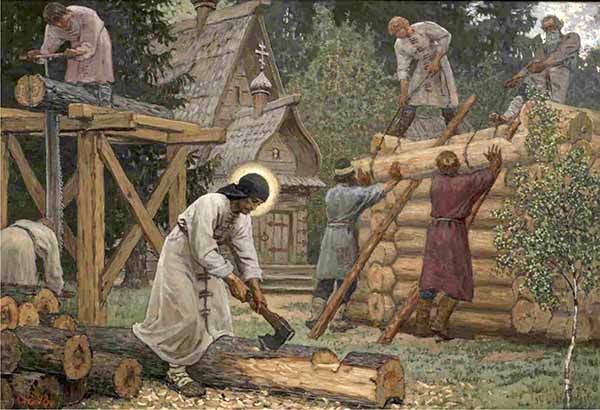 Некоторые люди оставались жить вместе Сергеем в лесу. Вскоре маленькой часовни стало не хватать, и тогда они построили церковь побольше, построили новые кельи. сделали ещё необходимые постройки. Так образовался в лесу первый в России монастырь.