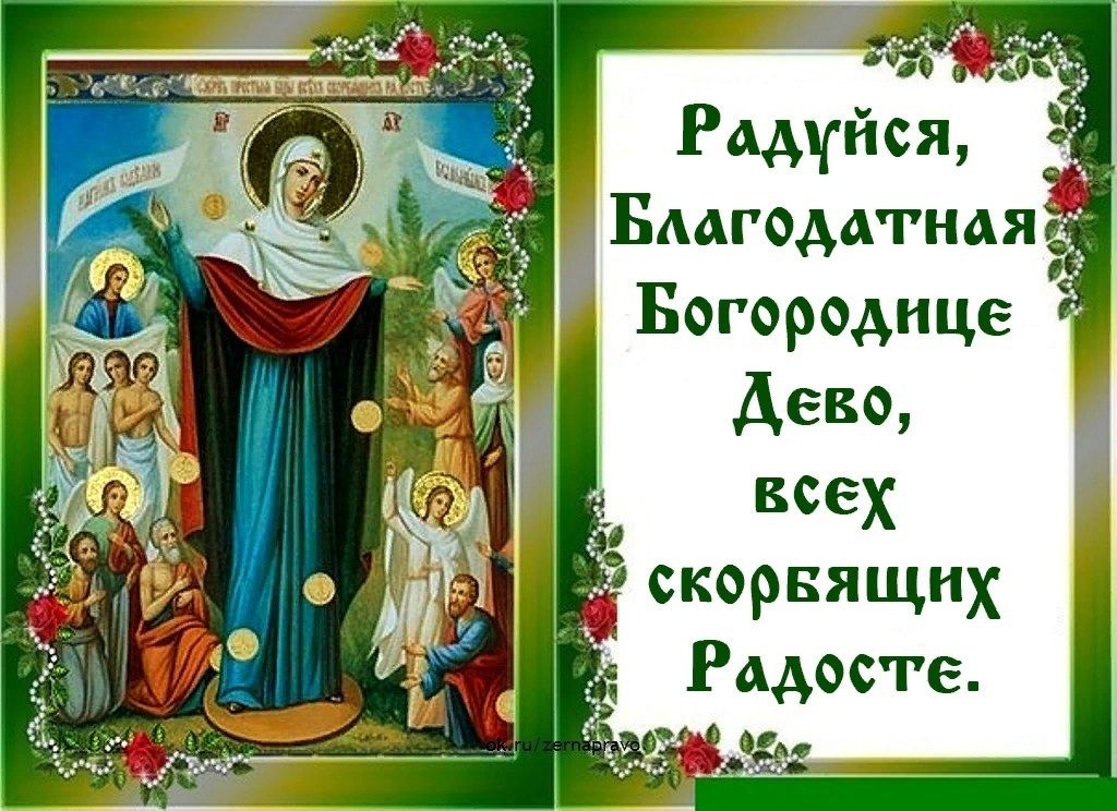 И Она, Радость всех скорбящих, наша Небесная Мать, простирая Свой державный Покров, заступит, спасет и помилует всех нас. Аминь.