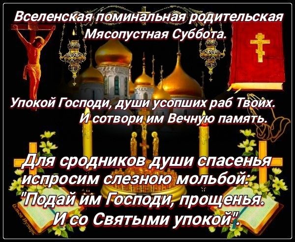 Всего лишь две субботы в православном календаре имеют статус вселенских. Среди них Мясопустная и Троицкая (перед Пятидесятницей). Мясопустная суббота считается днем всецерковного поминовения усопших. Для поминовения служат панихиды.