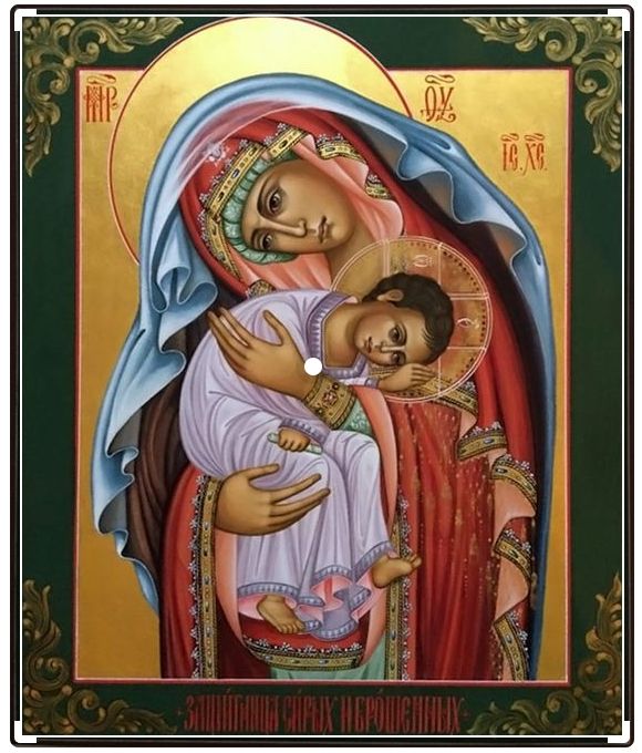Икона «Защитница сирых и оставленных» — символ материнства, поэтому каждая женщина, мечтающая о ребенке, всегда может попросить Пречистую Деву даровать ей это счастье.